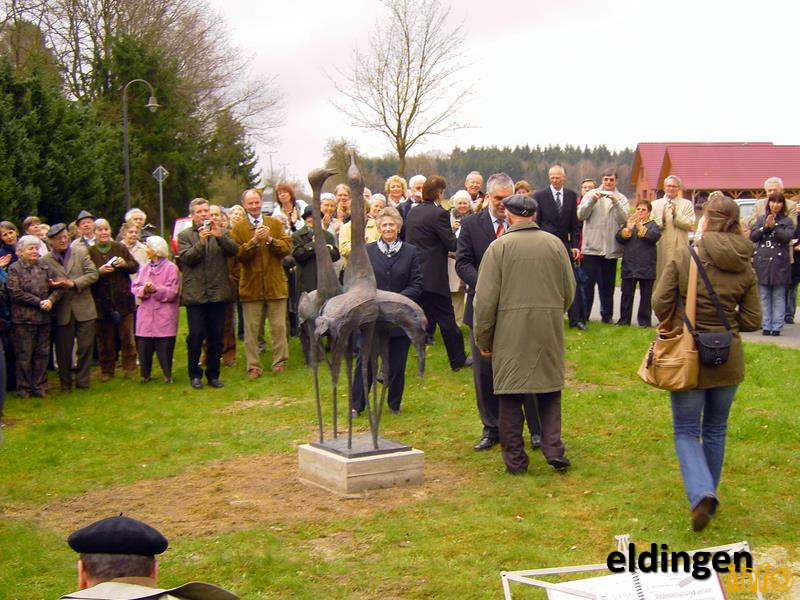 Enthüllung der Kranichskulptur von G. Schlotter in Bargfeld